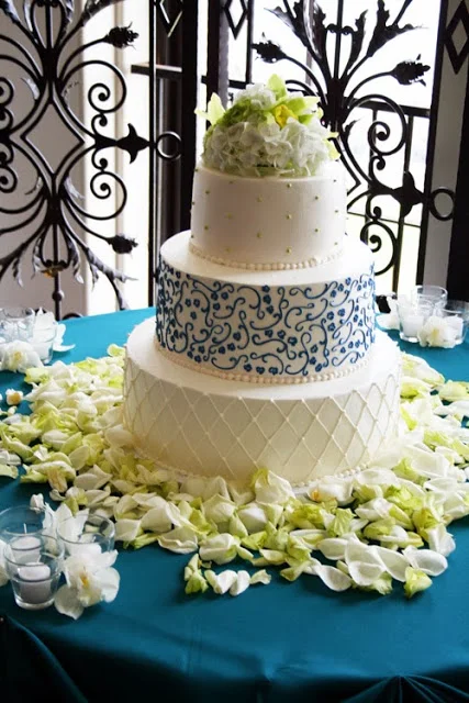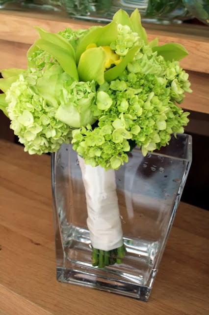 Jennifer and Jasen held their wedding reception at the Redondo Beach Historic Library – a very unique venue for a wedding (I am a big fan of libraries!). Their colors were ivory, green, and teal. For the green bridesmaid bouquets, we used baby green hydrangea, “super green” roses, and lime green cymbidium orchids.
