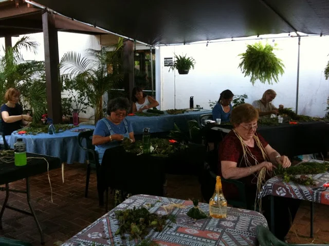 There were about 10 women in the workshop and we sat in the shade of the courtyard of the historical Kauai museum. The sun was shining and there was a slight cool breeze – how wonderful to learn and work with plants and flowers outdoors!