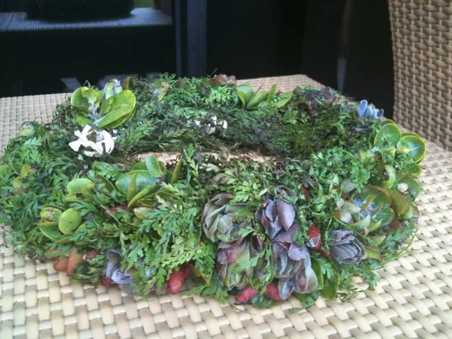 Notice how the inside of the lei is completely covered with ferns making it comfortable to wear – no errant stems sticking you in the head.