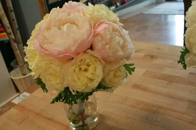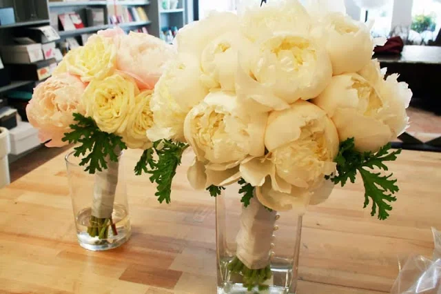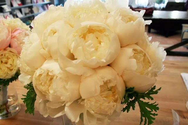 Annie’s bouquet featured all white peonies in various states of openness.