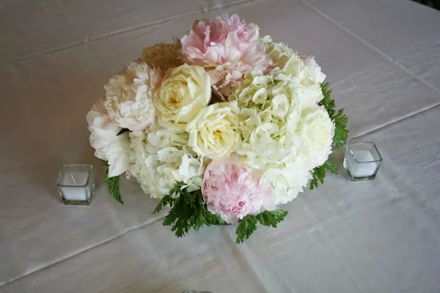 Annie loves peonies and it was the perfect time for white and blush pink peonies. We also used lovely ‘polo’ ivory roses and hydrangea.