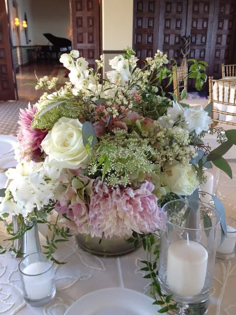Annie and Ted were married on a perfect June day at the Neighborhood Church, followed by a reception at the Palos Verdes Country Club. Their colors were ivory with touches of blush pink.