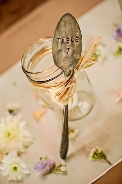 Old flattened spoons with table numbers etched in — another great find by Senta!