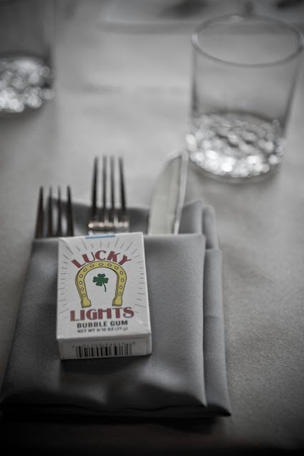 Each place setting held a box of candy cigarette gum! I remember getting these as a kid and thinking I was so cool puffing out the fake smoke!