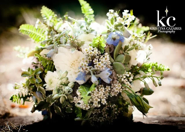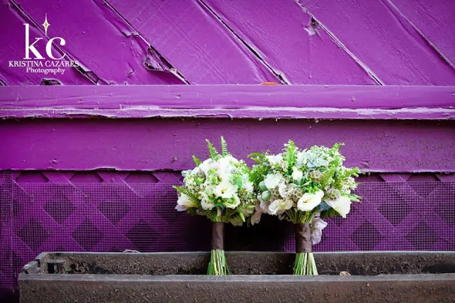oyce carried a bridal bouquet of pink and peach flowers: pink/peach " Juliet" garden rose, white “polo” roses, white ranunculus, white sweetpeas, pink dahlia, Jasmine vine, sword fern and lysimachia.